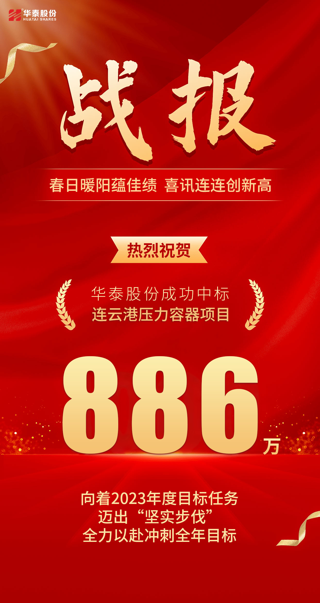 春日暖陽蘊(yùn)佳績,喜訊連連創(chuàng)新高。近日華泰股份以豐富的經(jīng)驗(yàn)、雄厚的技術(shù)力量和良好的企業(yè)信譽(yù),通過層層篩選、激烈角逐,成功中標(biāo)連云港壓力容器項(xiàng)目。