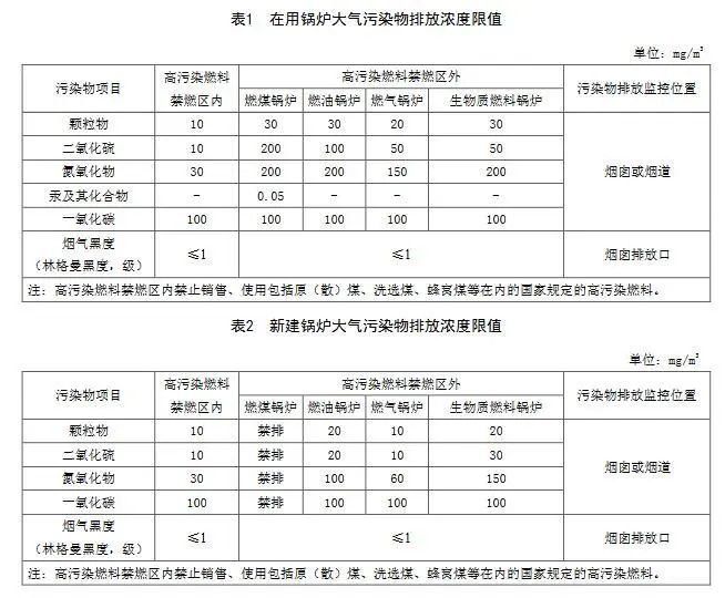 6、成都市《鍋爐大氣污染物排放標(biāo)準(zhǔn)》于今年3月發(fā)布,2021年起,在用鍋爐實(shí)施表1所示限值,新建鍋爐須按照表2實(shí)施;2022年起,在用鍋爐也應(yīng)遵循更為嚴(yán)格的表2限值。2022年,成都計(jì)劃全面落實(shí)燃煤鍋爐禁排方案。具體數(shù)據(jù)可參看下表。